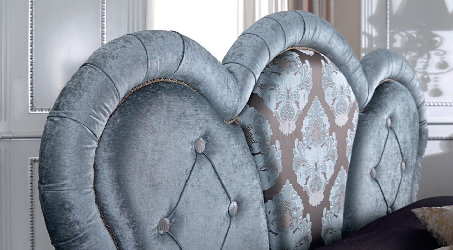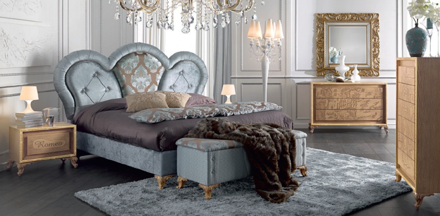 Bedroom (Suite bedroom) from the Italian manufacturer Mirandola Export. The headset frame is made of wood. Upholstery textile fabric according to the manufacturer's catalogue.