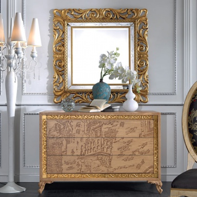 | Description: | A chest of drawers from Italian manufacturer Mirandola Export. Model with three drawers. The frame is made from wood, legs are decorated with carvings. Finish - Verona Red hollow effect. “Romeo & Giulietta Theme”. The color in the photo. |