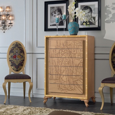 | Description: | A chest of drawers from Italian manufacturer Mirandola Export. The model with six drawers. The frame is made from wood, legs are decorated with carvings. Finish - Verona Red hollow effect. “Romeo & Giulietta Theme”. The color in the photo. |