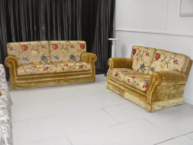 | Description: | Set of two double couches Loris from the "Classic" collection from the Italian manufacturer TreCi Salotti. Made in the classic style. Frame made from wood, filler - polyurethane foam. For seats used high-strength elastic belts. Legs covered with a drop skirts, rolled arms embellished capes. Sofas upholstered with patterned fabrics in shades of yellow. The color scheme and trim as in photo 5. Price on request factory. |