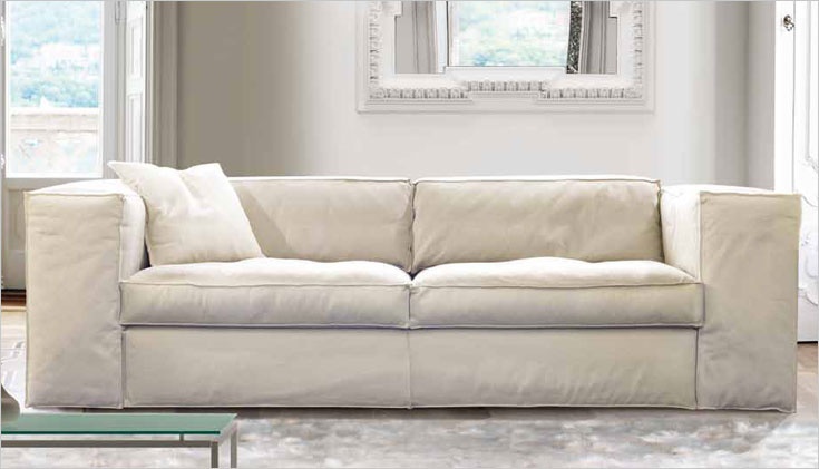 Sofa Martin from the Sweet Dream collection from the Italian manufacturer TreCi Salotti. The Martin line of sofas, made in a modern style, is very diverse. It includes two and three seater sofas, as well as fractional sizes available on request. A frame of wood fully sheathed, upholstery - textiles from the company's range, the filler is polyurethane foam. For seats used high-strength elastic belts. Optional spring seat. Wide armrests the same height with backrest and removable pillow full of goose down. Colors to choose in stock.