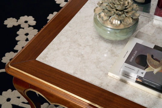 | Description: | Table from the Italian manufacturer Mirandola Export. Coffee table with square top. Top lacquered with marble effect. The frame is made of wood. Finish: M1+M25 antiqued. The color in the photo. |