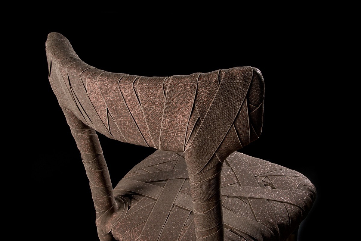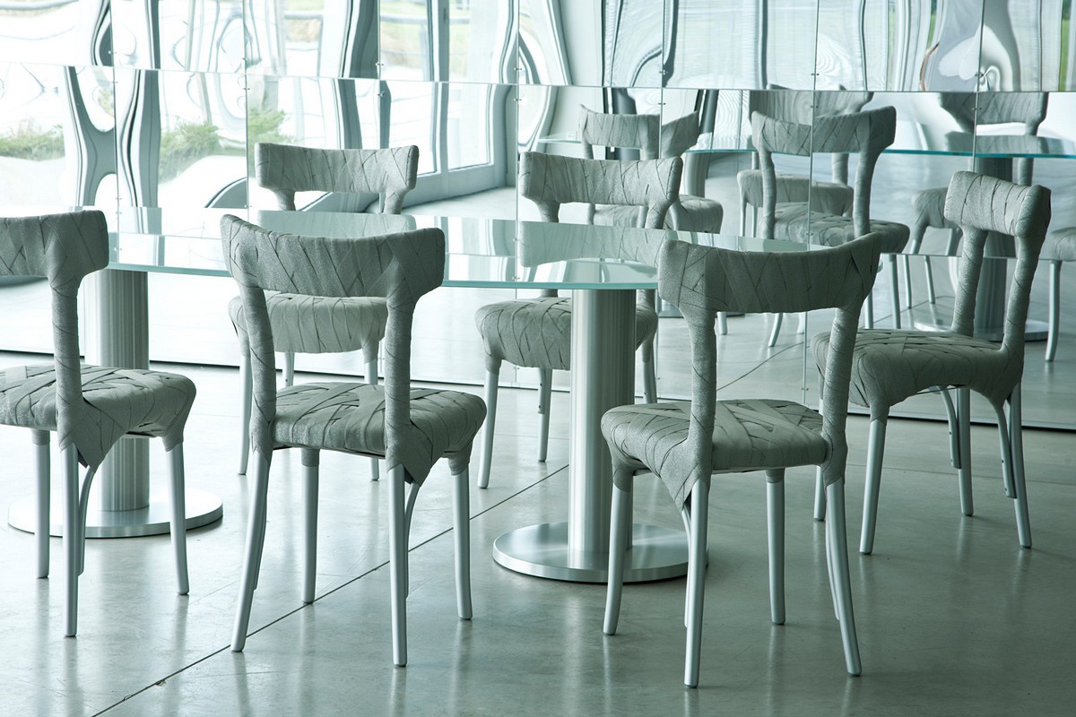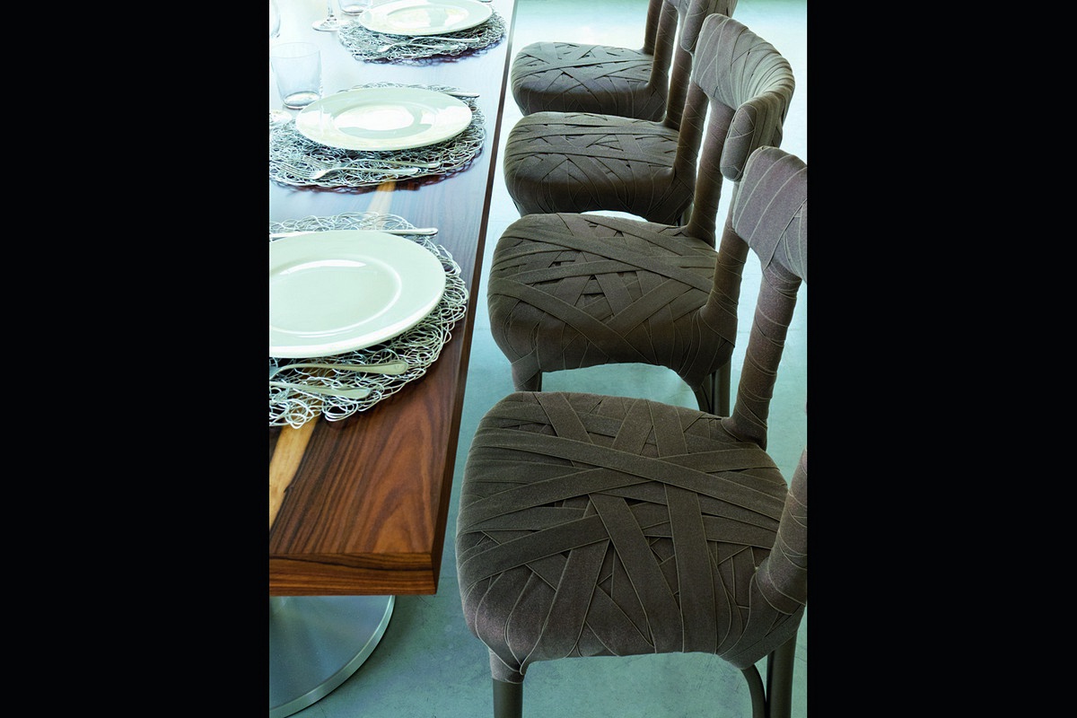 The chair is upholstered in polyester mummy Mummy, Edra