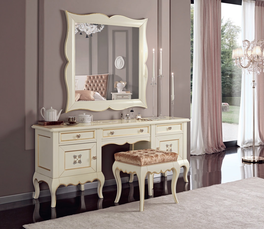 | Description: | Dressing table from the Italian manufacturer Mirandola Export. The model is equipped with drawers and cabinets with swinging doors. The frame is made of wood and decorated with gold leaf. Finish: M43+M25. The color in the photo. |