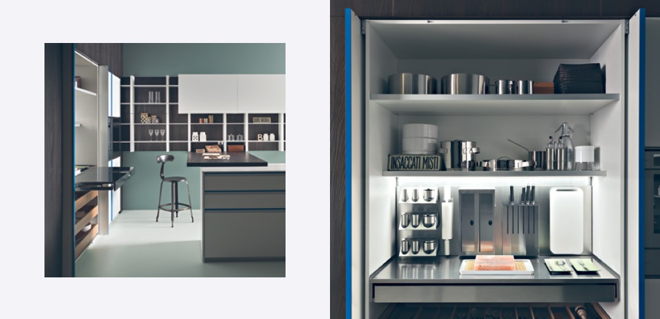 Kitchen Tweet from the Italian manufacturer Zampieri, designed by designer Stefano Cavazzana. Thanks to the modular system you can assemble the kitchen of any shape, multi-functional Peninsula may become as a dining table or a place for cooking and for snacks. The factory offers a great choice of finishes - this can be a melamine finish or lacquered painting in colour according to the catalogue of the manufacturer.