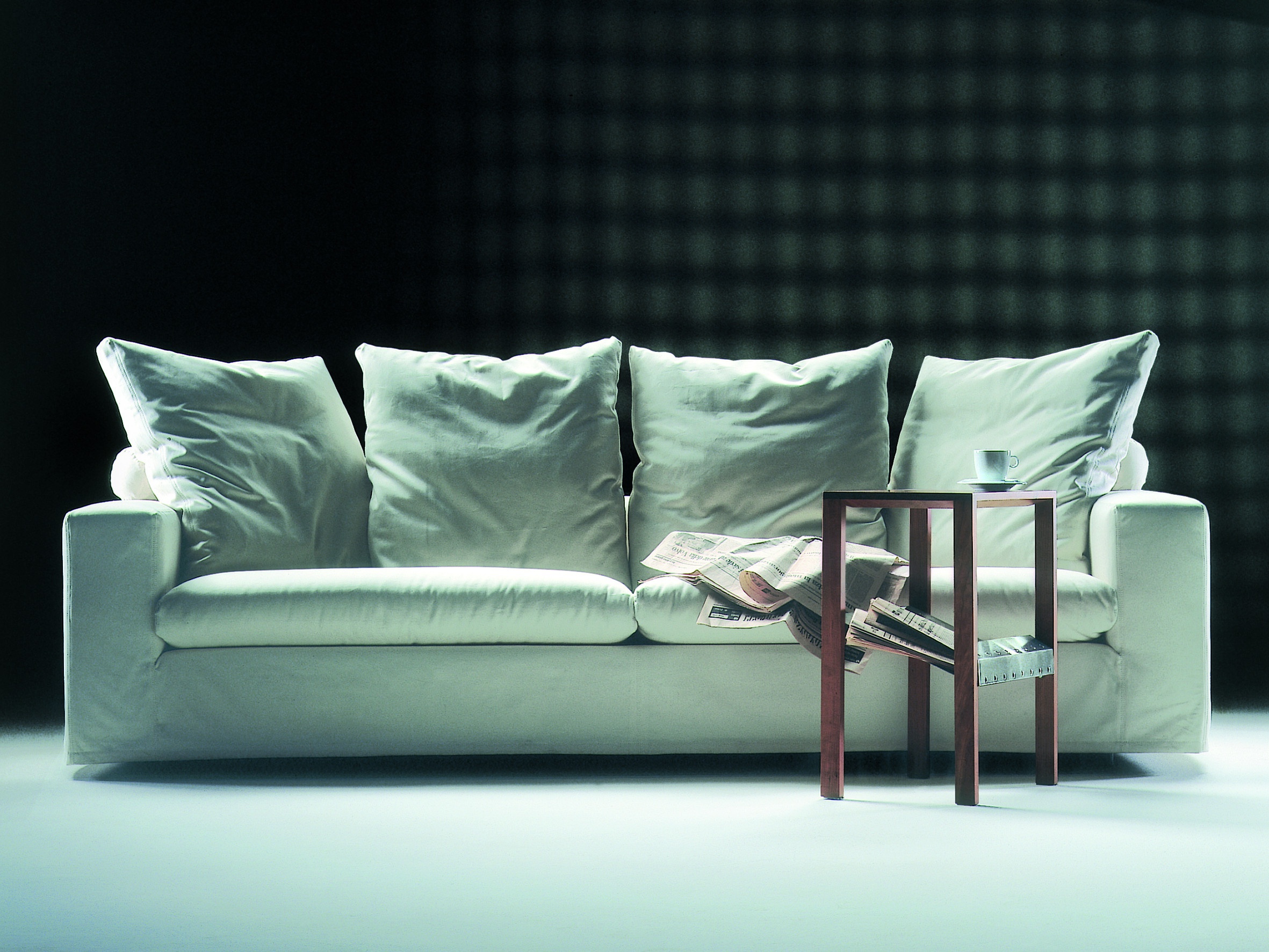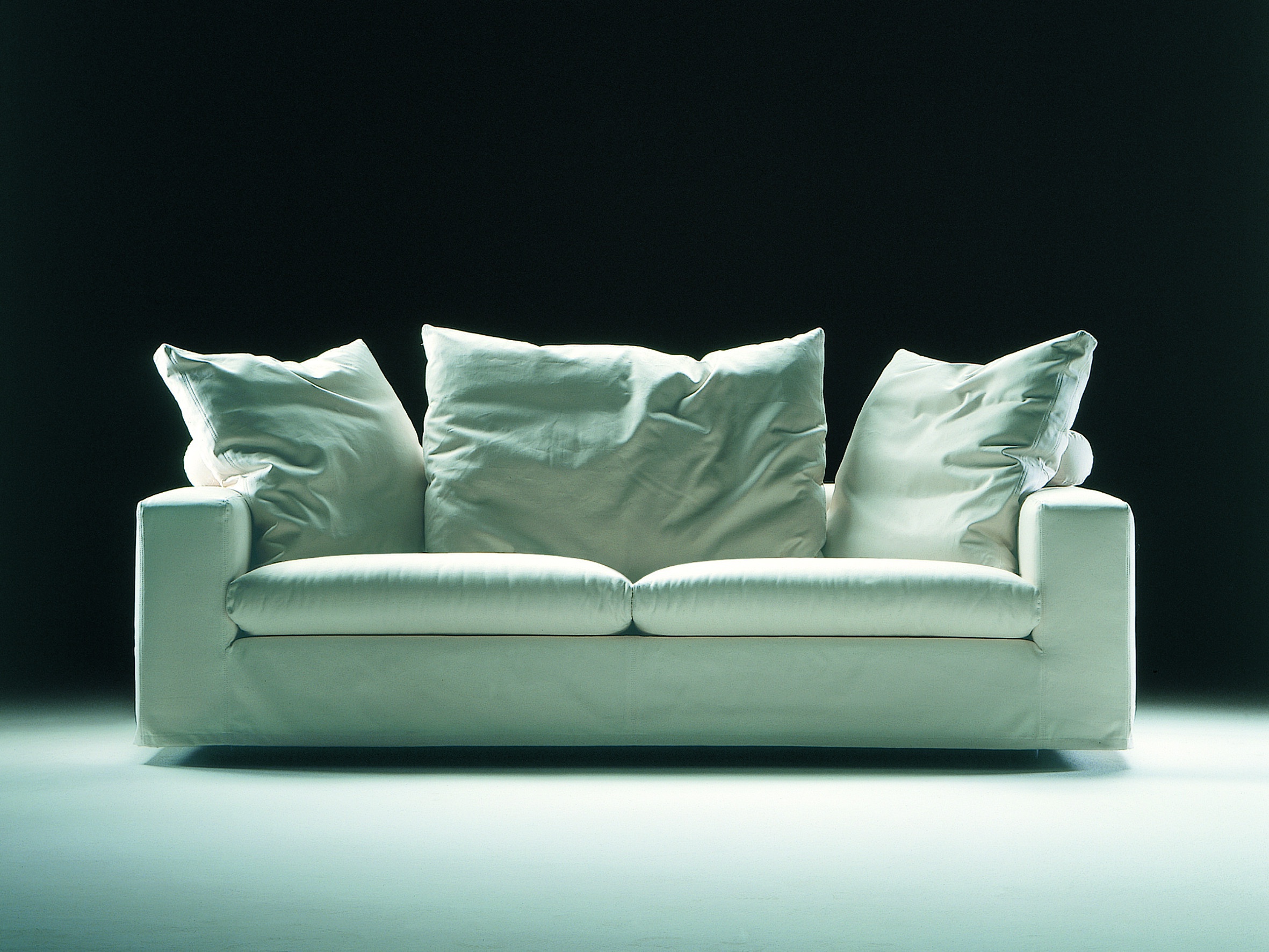 Poggiolungo sofa from Italian manufacturer Flexform. The frame is made of metal, filler - foam, upholstery - leather or textiles from a range of campaigns. Back cushions and decorative cushions are made in the fluff. The model double for living room in modern style. Product color white.