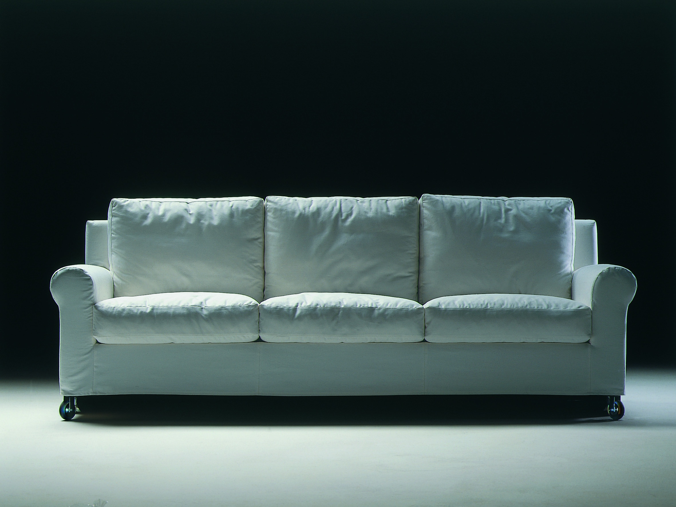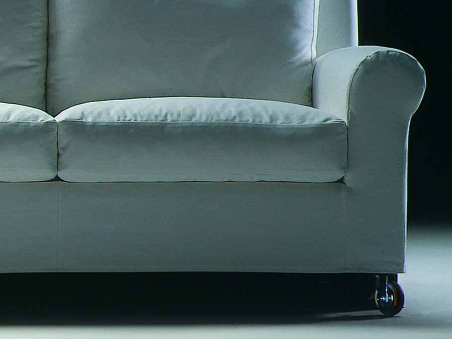 Ugomaria sofa from Italian manufacturer Flexform. The frame is made of wood, filler - foam, upholstery - leather or textiles from a range of campaigns. The seat cushion and backrest is made in the fluff. Beautiful two or three-seat model on wheels for living room in classic style. Product color white.