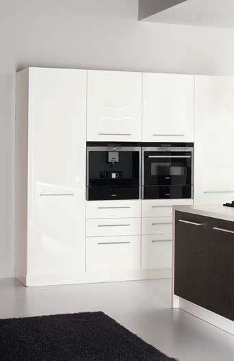 The side walls in the decoration of lacquer. Door wall cabinets with opening system Push-Pull. Large range of accessories make any project multifunction.