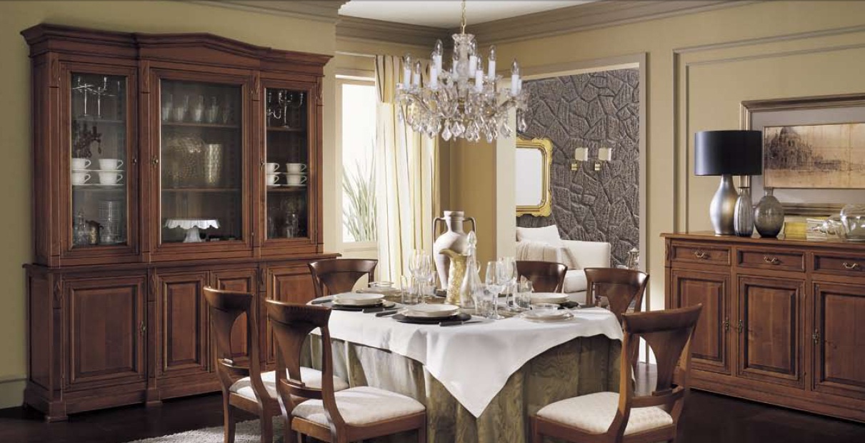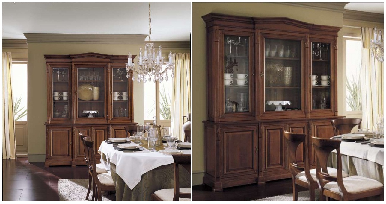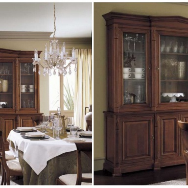 Sideboard Athene from the Italian manufacturer Serenissima. Sideboard with three doors glass top and wooden blind at the bottom. Made from solid wood in a cherry finish. A coating varnish. The product is rich in detail, the profiled elements. Shelves are mounted on the supports with notches. Sideboard in classic style will be a bright and important items in Your dining room. The product comes in dining sets collection Athene.