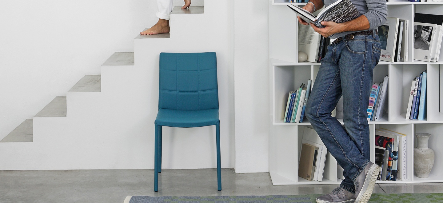 The Gilda chair from the Italian manufacturer Bonaldo. The model is made in a modern style. The frame is metal. Upholstery leather from the company portfolio. Filler - polyurethane foam.
