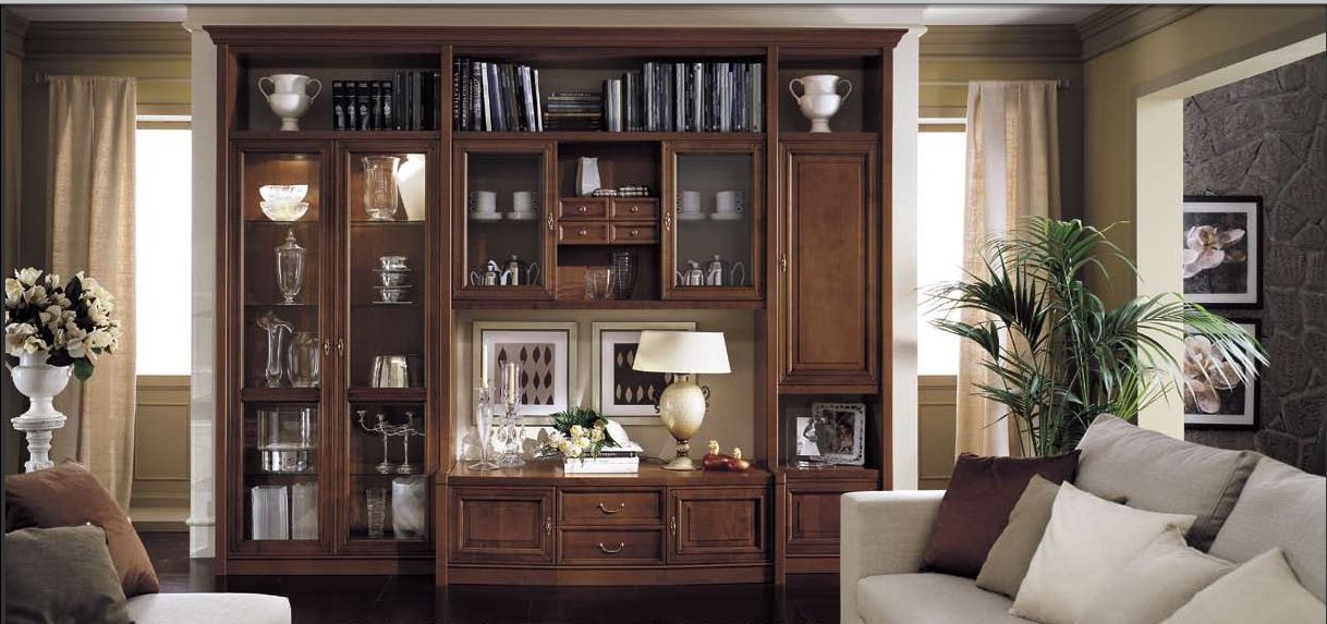 Rack Athene from the Italian manufacturer Serenissima. The material of the frame, the front - solid wood. Shutters, shelves - glass. Accessories metal. The surface is treated with lacquer. The product is equipped with open and closed niches, drawers, complemented by built-in lighting. Shelving in classic style, the perfect choice for a classic interior living room.
