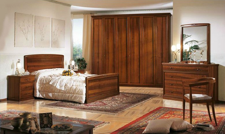 Set for bedroom solid wood finish walnut Monica, Serenissima