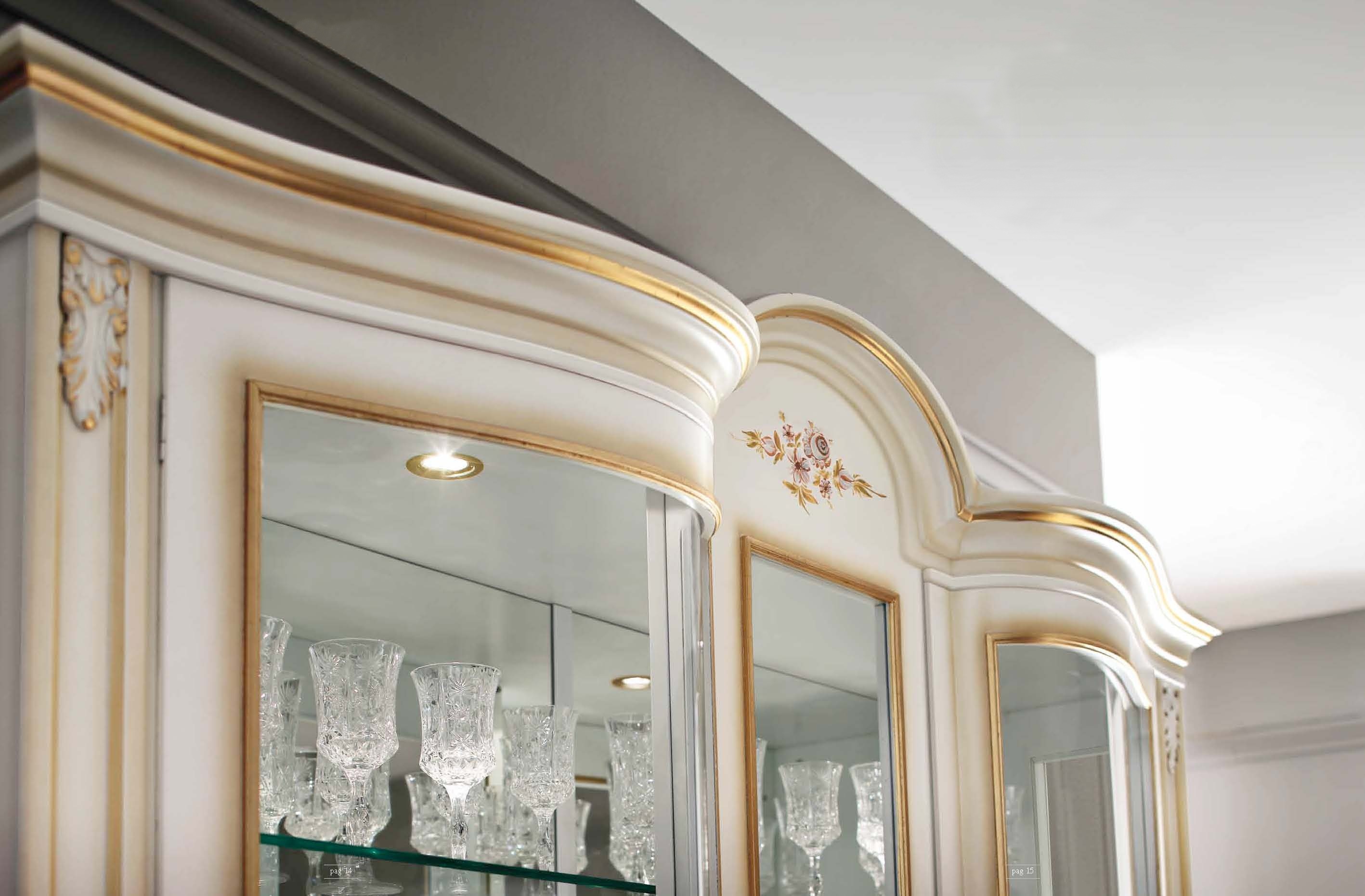 Showcase Vivaldi from the Italian manufacturer Maronese. Model in classic style, made of wood. Showcase has two glass shelves and three wooden shelves. The back wall is mirrored. Also has interior lights. Showcase Vivaldi with a decorative pattern will brighten Your interior.