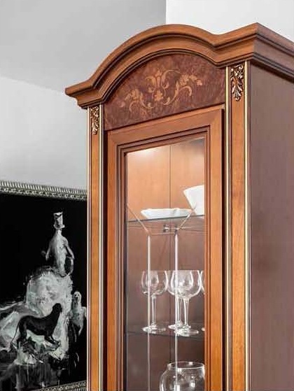 Showcase Verona from the Italian manufacturer Maronese. Model in classic style, made of wood. The storefront has a single door, glass and wood shelves, mirrored back wall and internal light. There is a model with the right-hand and left-hand opening. Showcase Verona will decorate Your interior.