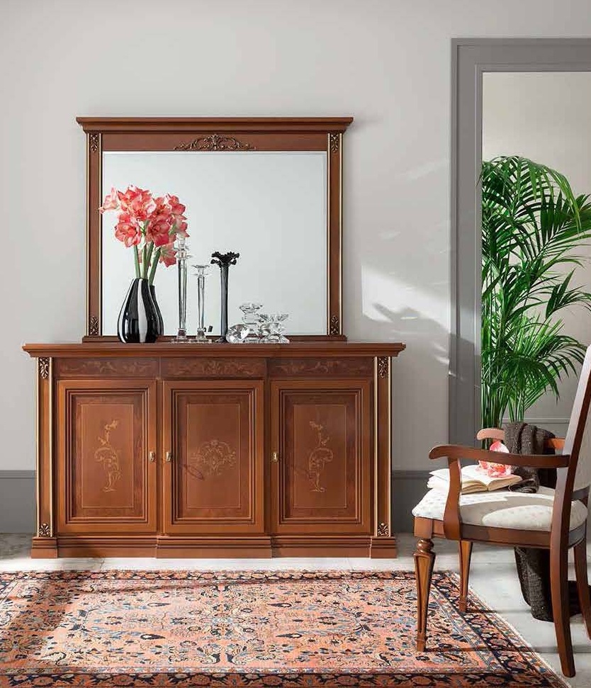 Sideboard Verona from the Italian manufacturer Maronese. Model in classic style, made of wood. The sideboard has three doors and internal shelves. Wonderful bar decorated with a decorative pattern. This piece of furniture, not only decorate Your interior, but also create a comfortable atmosphere.
