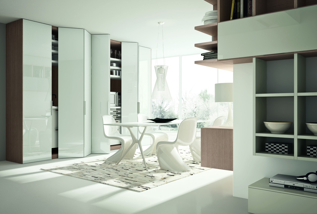 Integrable systems of Omnia, from the Italian manufacturer Falma Italia, will fit perfectly in any structure of the dwelling. With integrated composite elements, even those hidden and underutilized space can be used for maximum benefit. Thanks to the multifunctionality and flexibility of the systems, even the most complex decision of an interior will not lose its harmony and ease of use