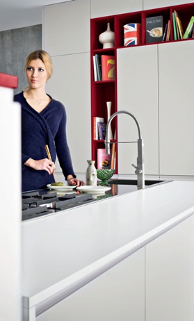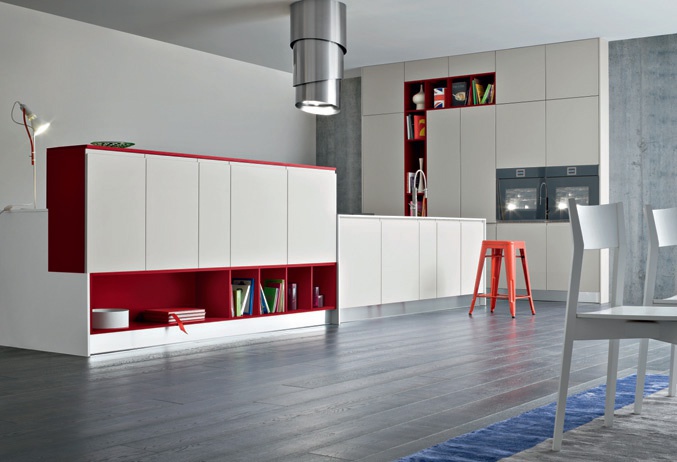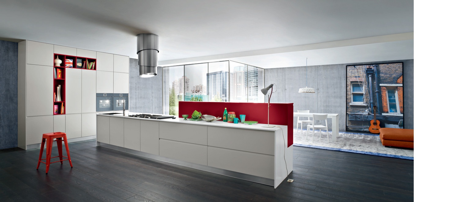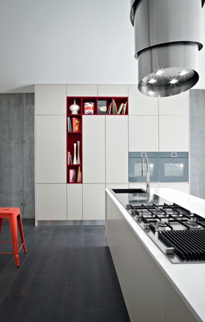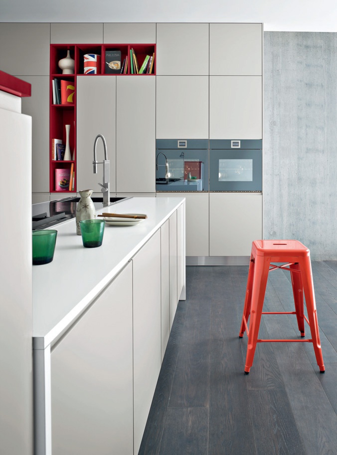 Kitchen Flo comp.1 from the Italian manufacturer Ar-Tre. The headset frame is made of waterproof wood. Fronts made of MDF in a Matt lacquer finish beige tones, open elements in Matt Burgundy color, handle recessed in the door. Countertop made of "corian", base - chrome plated steel. Built-in appliances. Colors to choose from manufacturer's catalogue. Kitchen full of pull-out items internal content and contrast open modules. The modern style of execution. Space are combined into a single area, connected two environments: living and living - the perfect combination.
