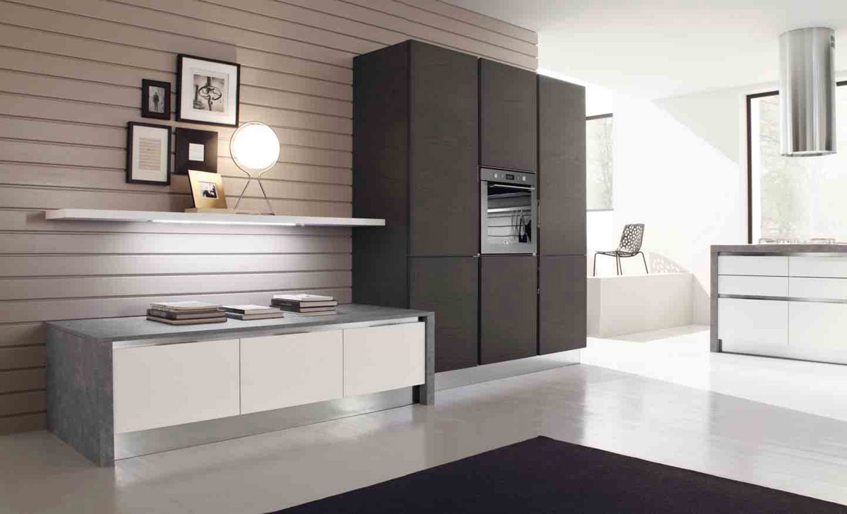 Kitchen (kitchen set) Essenza Italian manufacturer of Arrex le cucine. The model is made in modern style. Finish the side walls and fronts veneer or lacquer (glossy or matte) from the company portfolio.