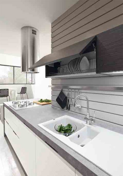 frame, facades: wood accessories: stainless steel countertop: stone facades: lacquered |