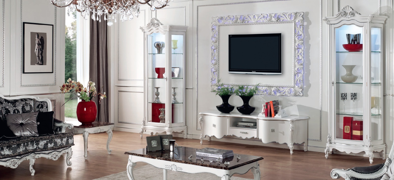 Frame for your TV from the Italian manufacturer Mirandola Export. Wall panel with carved frame for TV. The frame is made of wood and decorated with carvings. Finish: M41+M27.