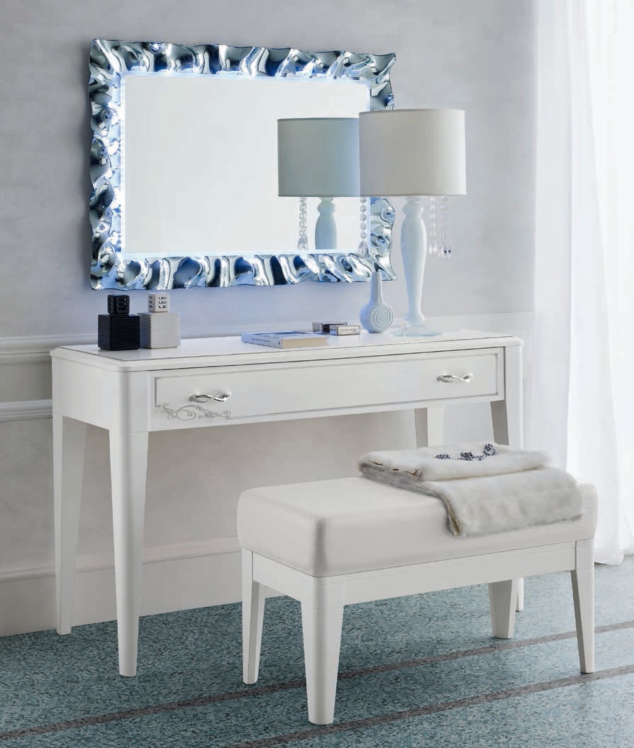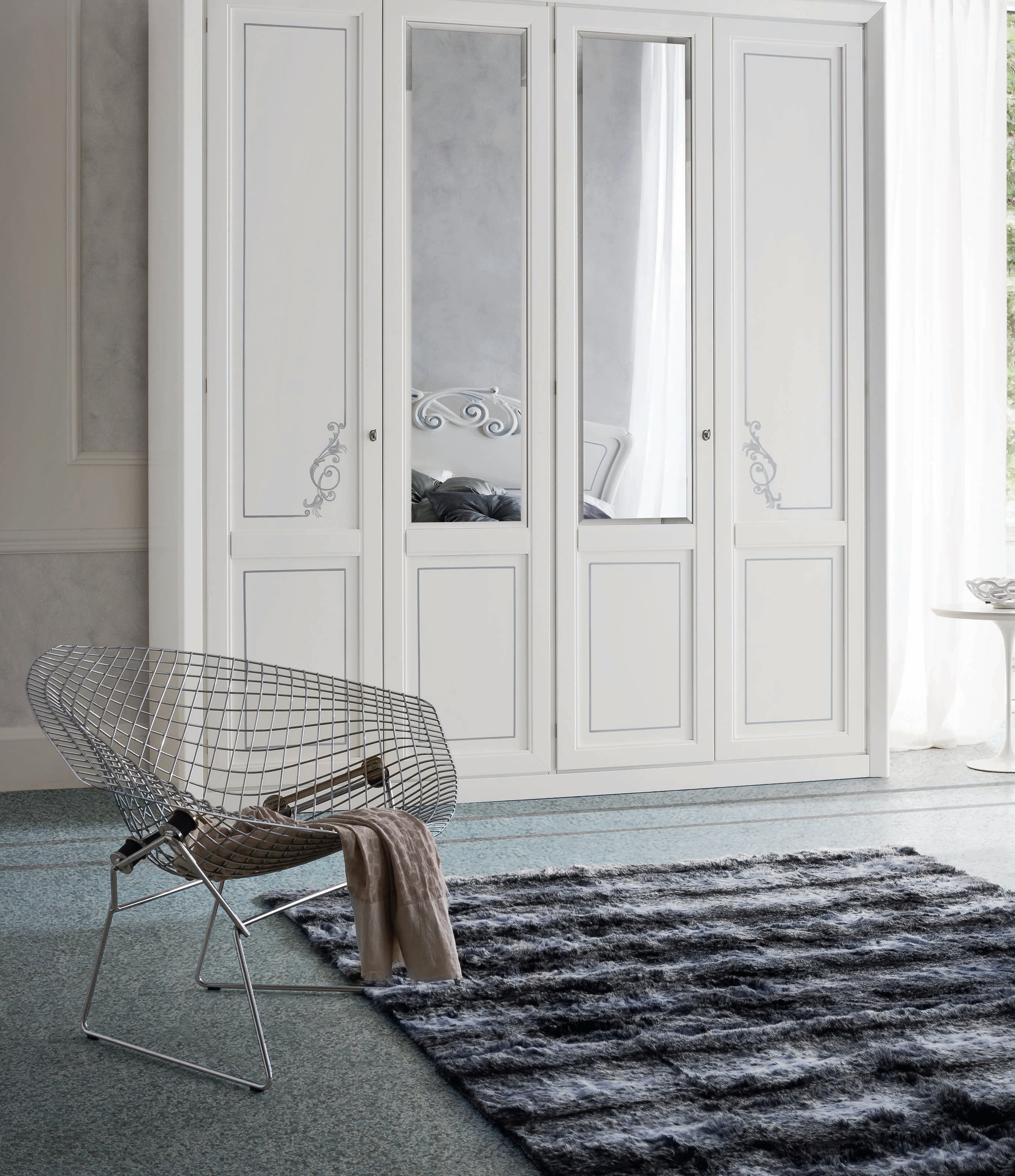 frame, base: solid wood accessories: metal Cabinet doors: mirror glass bench: leather coating: lacquered coating: Matt decor: silver plated decor: carved decor: painted |