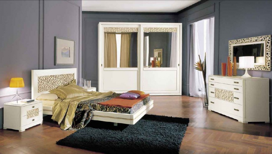 Bedroom set in walnut finish with carved in patina Lago di garda bianco, Serenissima