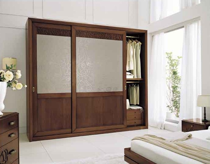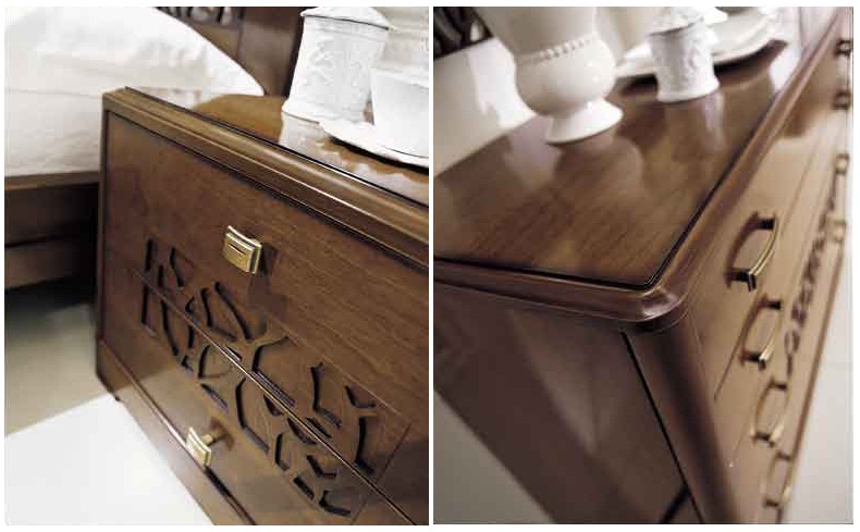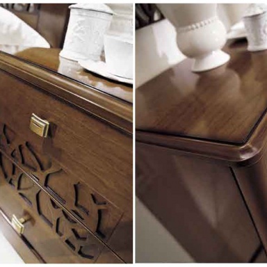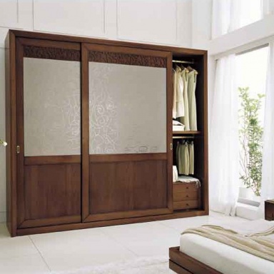 frame, base: solid wood finish: walnut accessories: metal wardrobe: mirror glass coating: lacquered decor: carved decor: silkscreen |