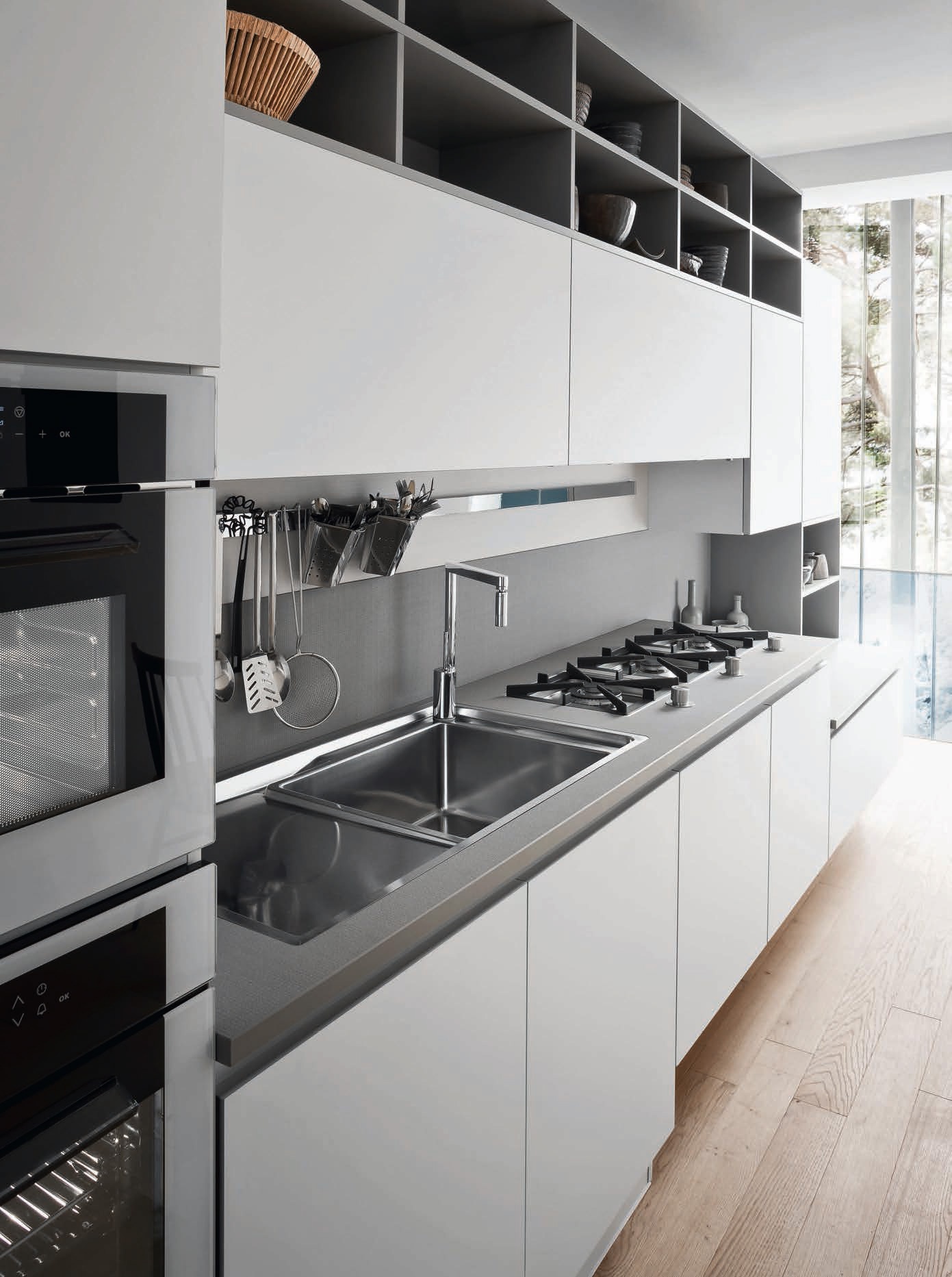 structure: wood facades: MDF countertop: quarzit accessories: metal facades: Matt |
