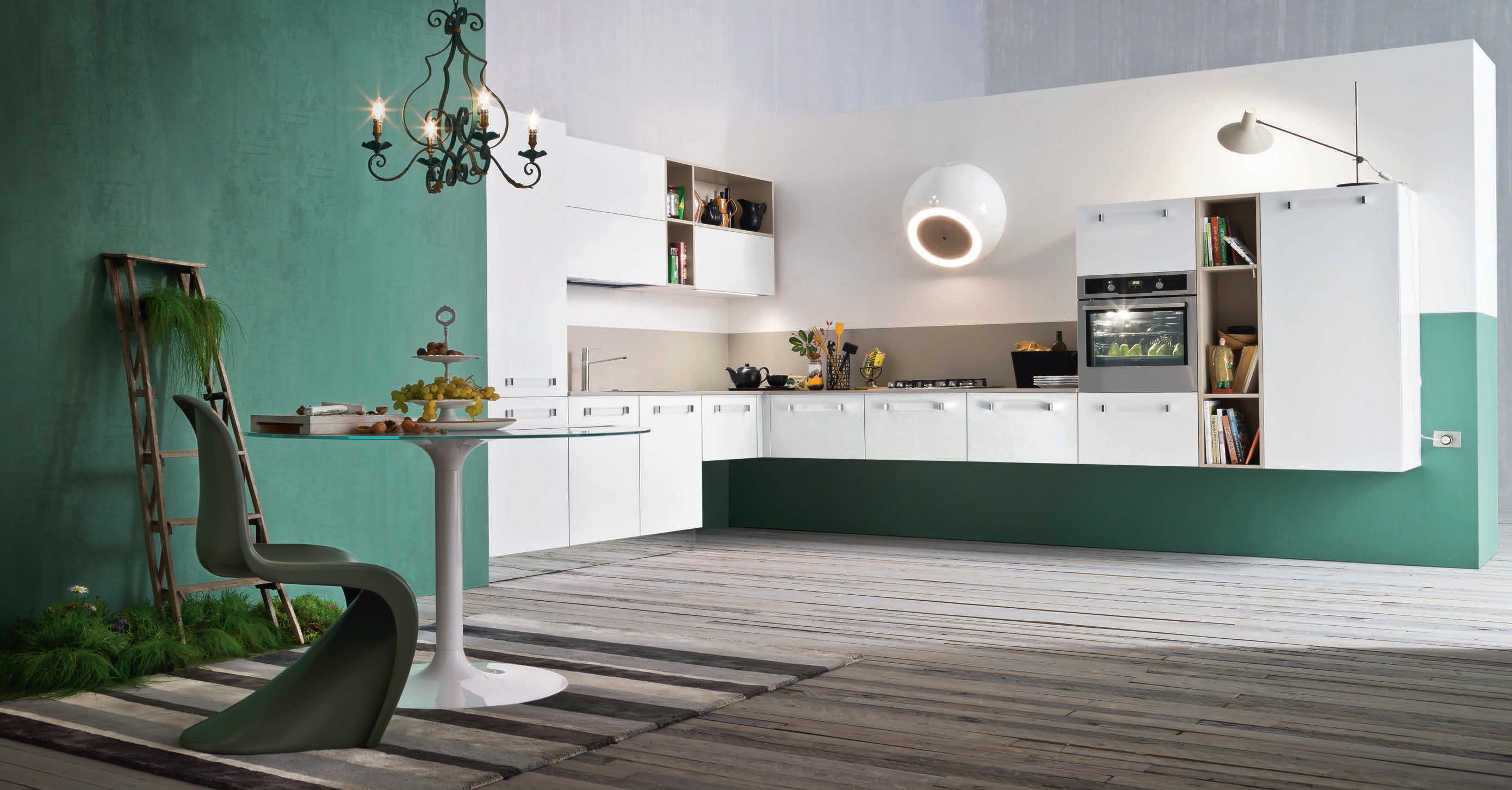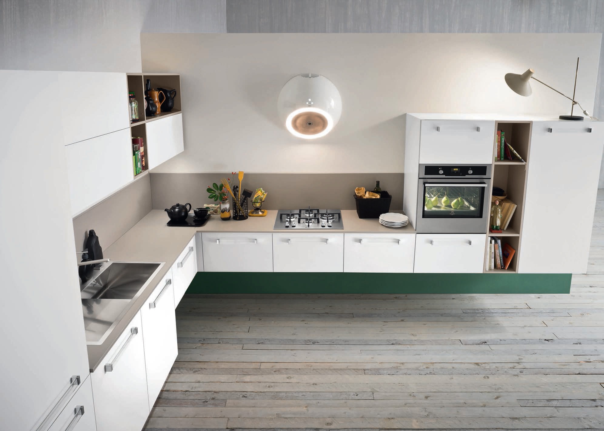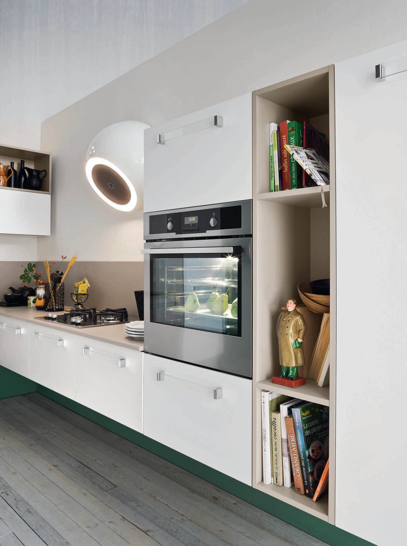 Kitchen Luna comp.2 from the Italian manufacturer Ar-Tre. The model is made of waterproof wood. Fronts made of MDF in Matt finish white lacquer, handle metal. Countertop made of artificial stone. Built-in appliances. Colors to choose from manufacturer's catalogue. For your convenience, drawers, hanging system and open elements. Practical and ergonomic solution for your kitchen in a modern style.