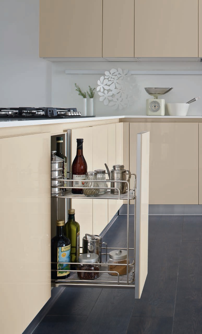 Kitchen Luna comp.4 from the Italian manufacturer Ar-Tre. The structure of the headset is made of water-repellent wood. Fronts made of MDF in high gloss lacquered finish sand colour, handles-goal finish in the color of the facade, fittings, chrome plated steel. The table top is made of corian white. Built-in appliances. Colors to choose from manufacturer's catalogue. Kitchen full of pull-out elements, internal content, the backlight. Practicality and functionality are inherent to this model. The style is modern.