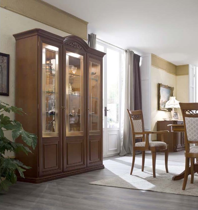 Showcase Sorrento from the Italian manufacturer Maronese. Model in the classic style, the frame is made of wood. Showcase has three doors, three glass and three wooden shelves. Interior lights and a mirrored back wall will decorate and put on display Your favorite items. Showcase Sorrento will make Your interior cozy.