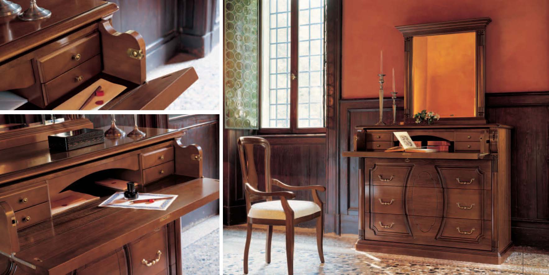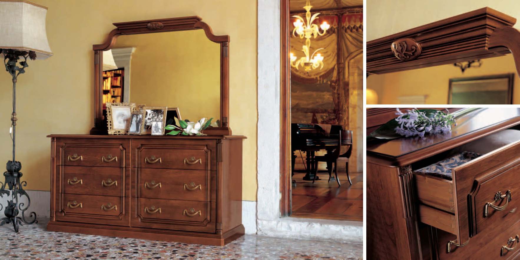 Bedroom (Suite bedroom) Millemiglia from the Italian manufacturer Tempor. Bedroom consists of double bed with footboard, prikrovatnyh tables, chest of drawers and wardrobe. This model includes 2 types of beds, chests of drawers and cabinets.