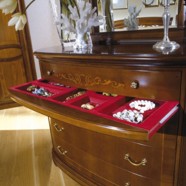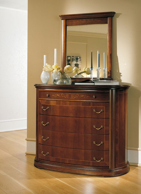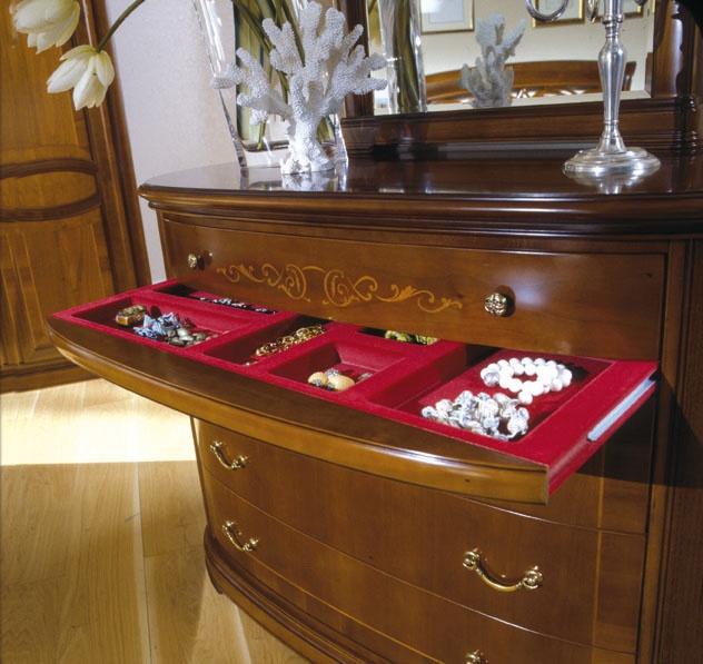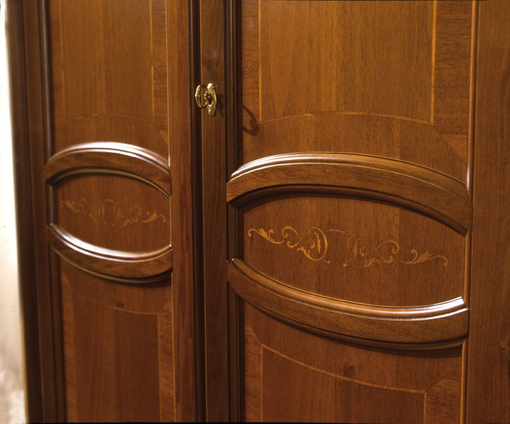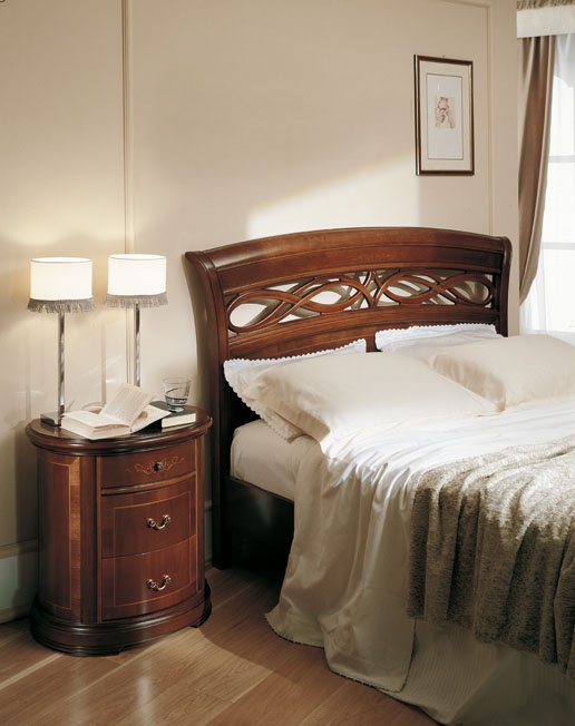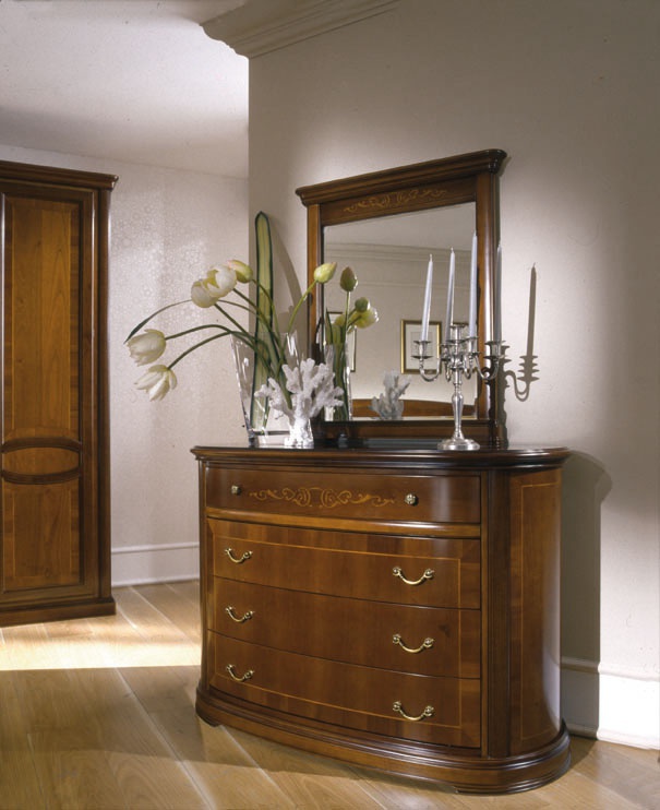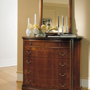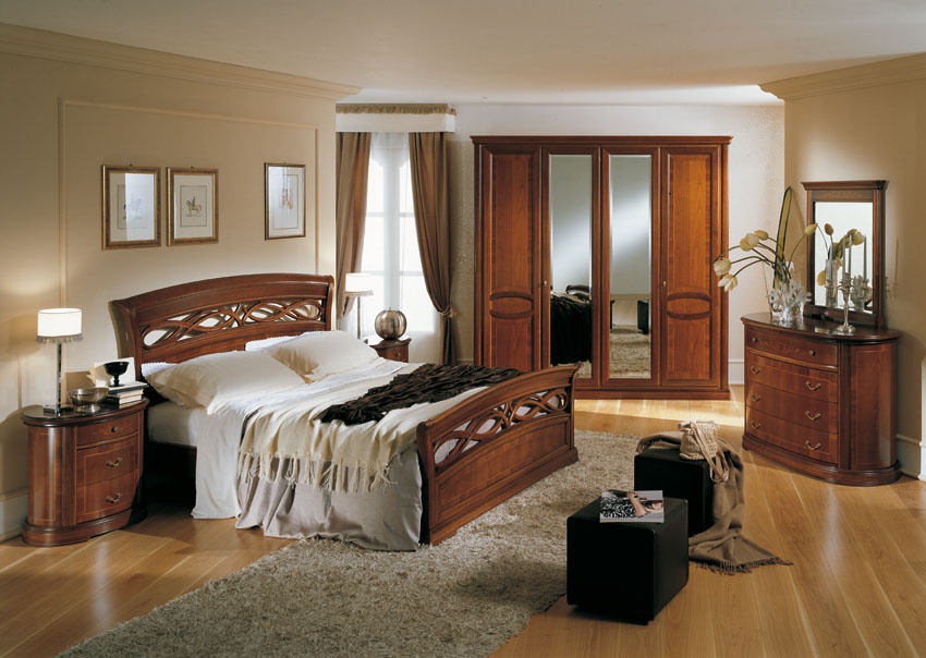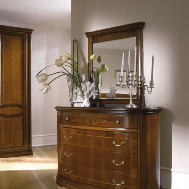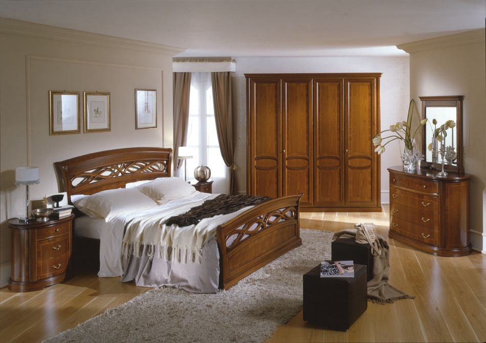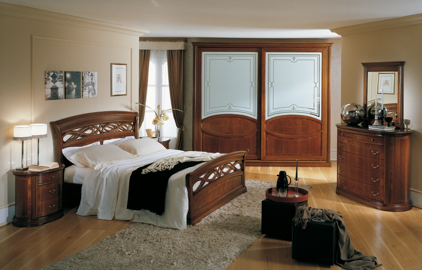 Bedroom (Suite bedroom) Opera from the Italian manufacturer Tempor includes a bed with a footboard, bedside tables, chest of drawers and a wardrobe with hinged doors. There are different variations pushkaram, including those with sliding doors. Rounded form of cabinets and drawers give softness and lightness to the interior.