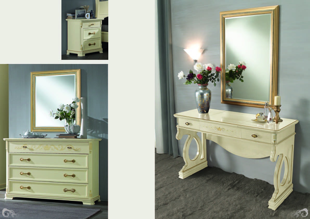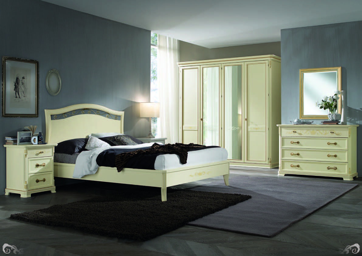 Bedroom (Suite bedroom) Passione laccata from the Italian manufacturer Tempor. The set includes a double bed, bedside tables, wardrobe with hinged doors, also available with dressing table. Wardrobe available with sliding compartment doors with glass inserts.