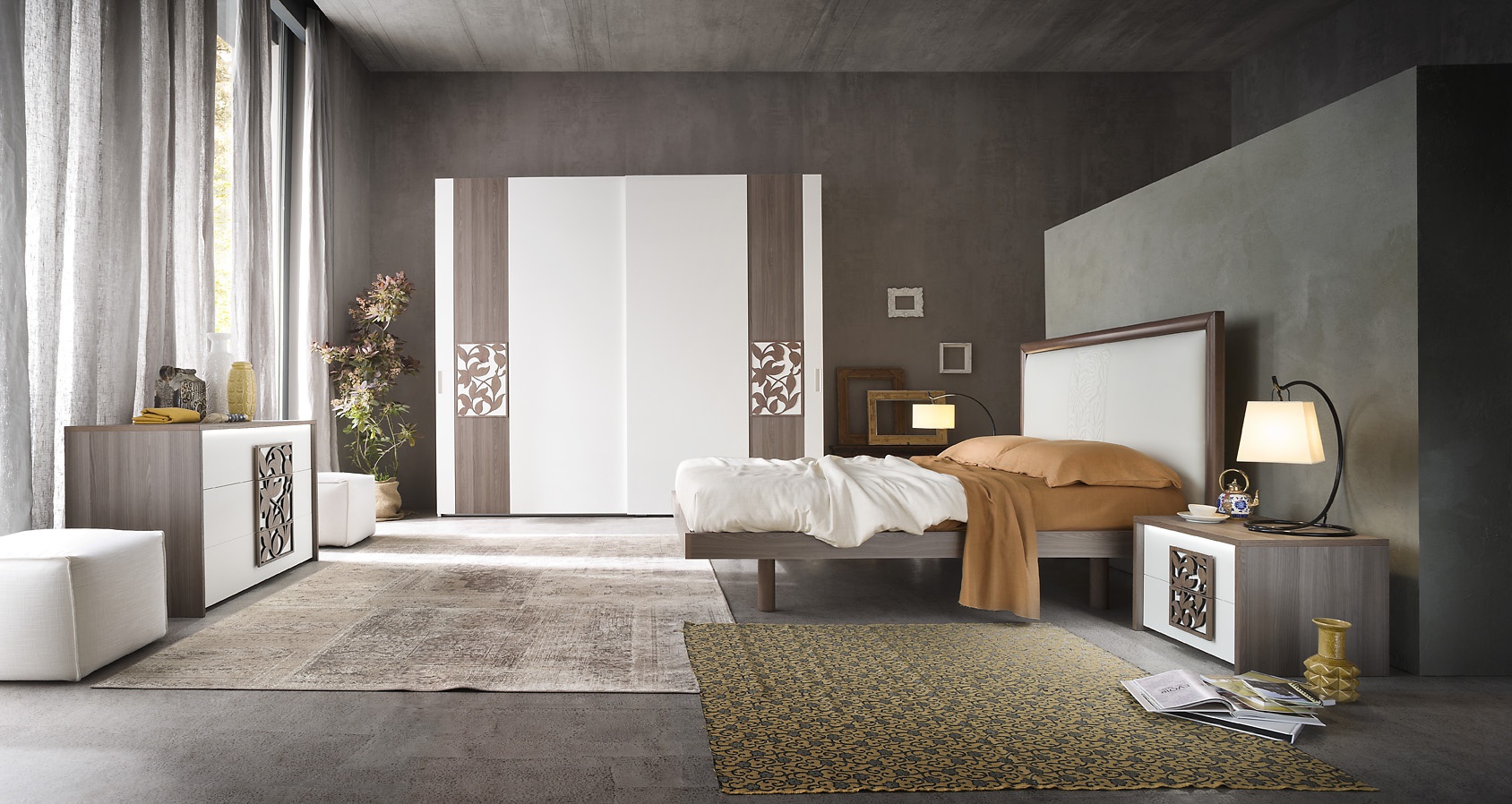 Set for the bedroom in the elm finish and melamine Fusion, Serenissima