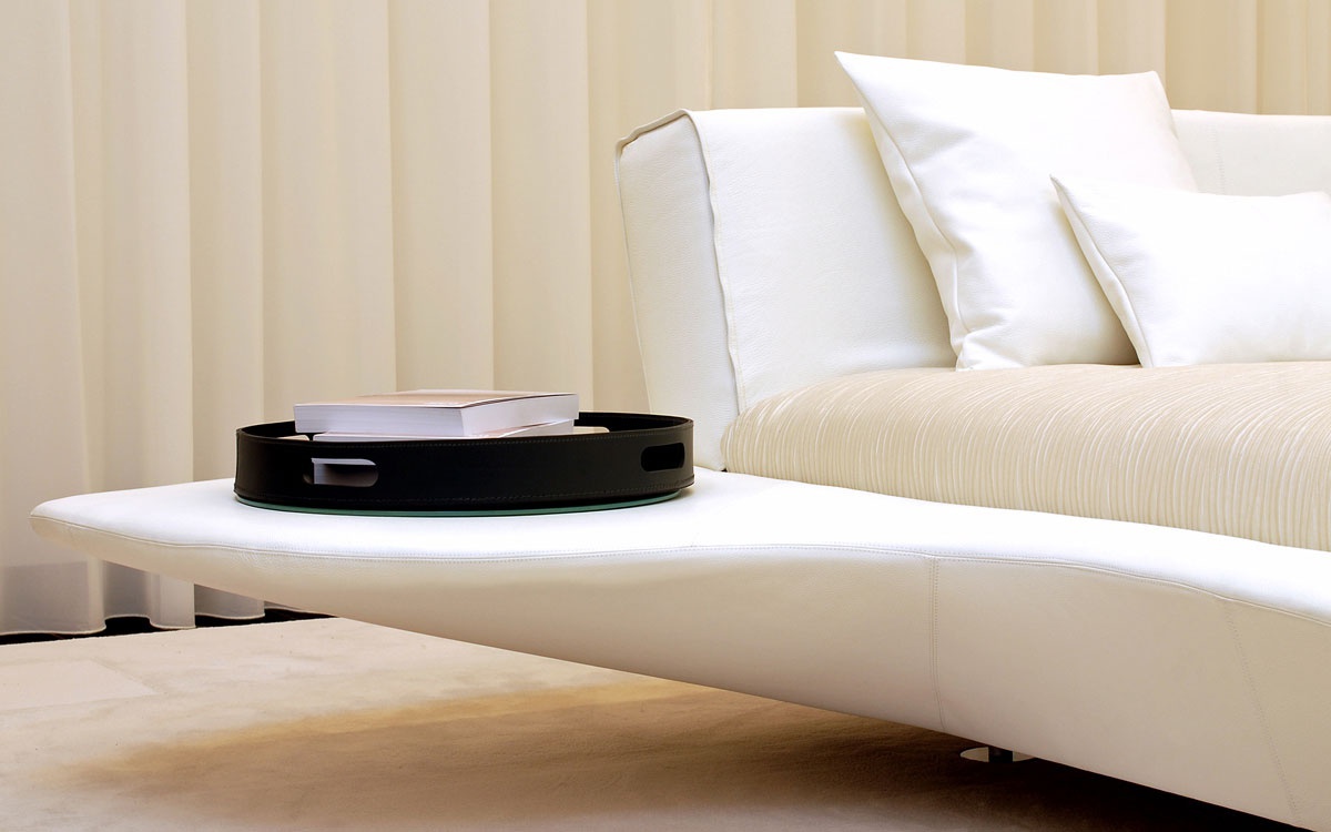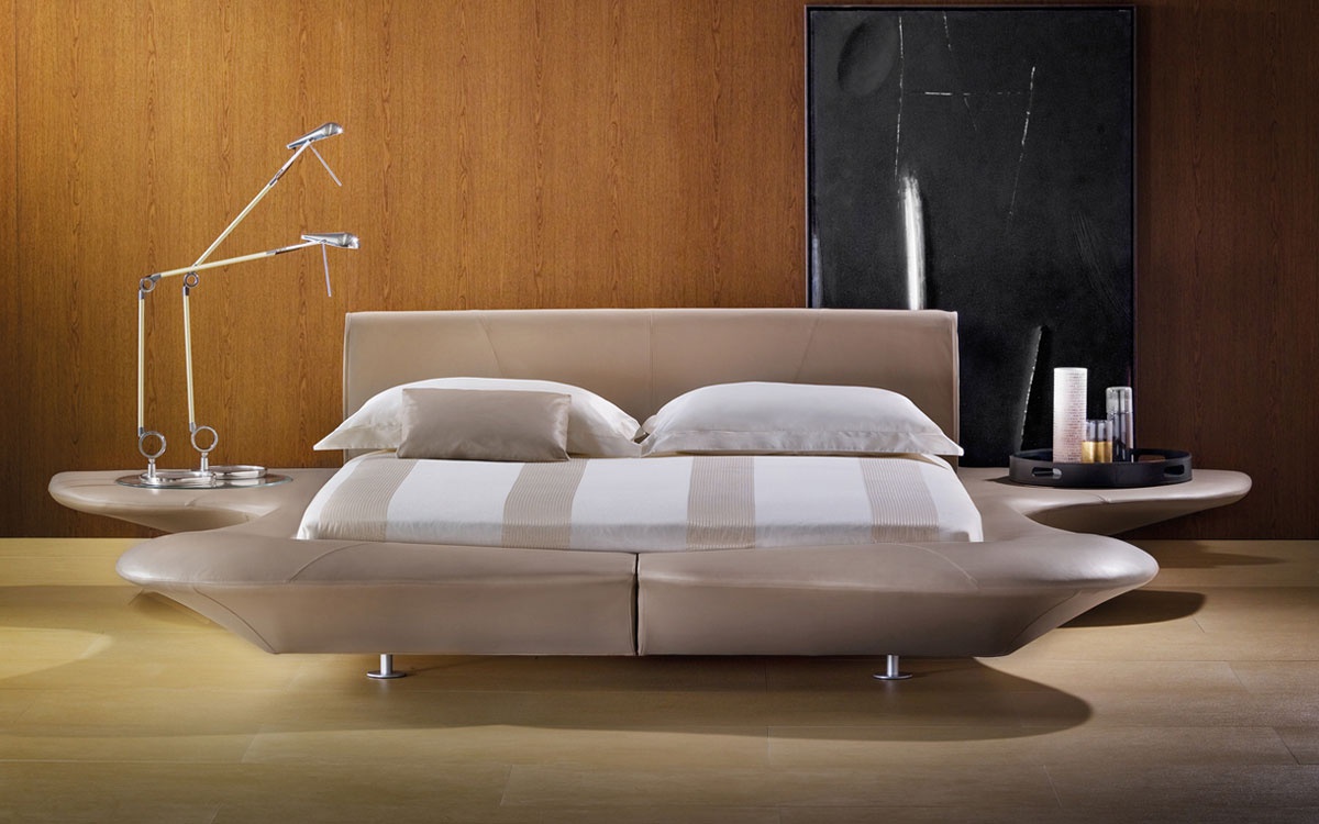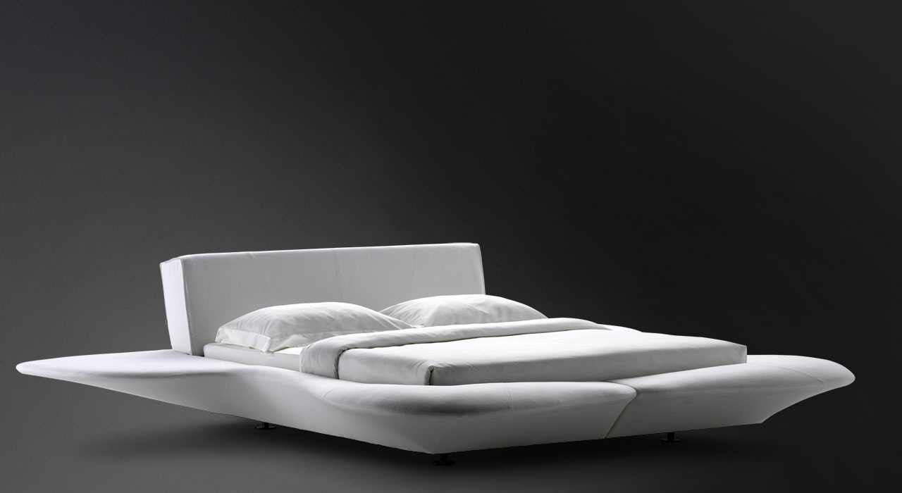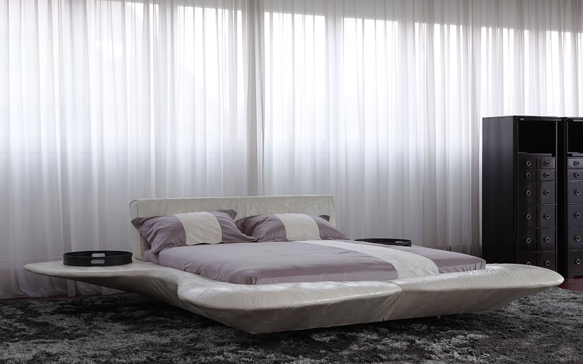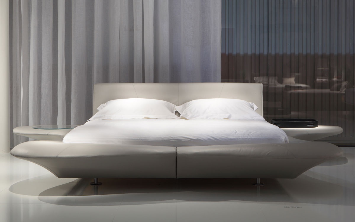 The Grandpiano bed by Italian manufacturer Flou. Upholstery - textiles from a range of campaigns. Model with shaped side panels on both sides replaced by two rectangular modules. A great choice for the bedroom in modern style. Product color white.