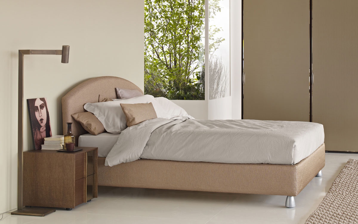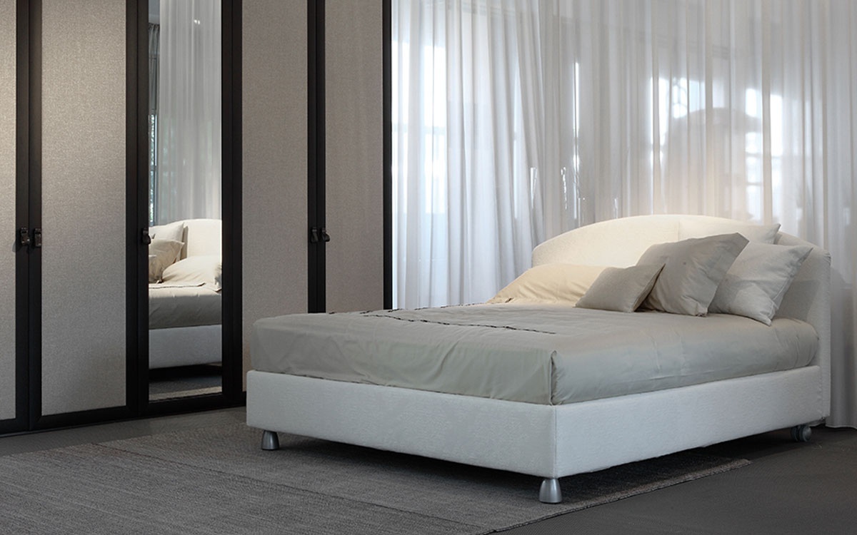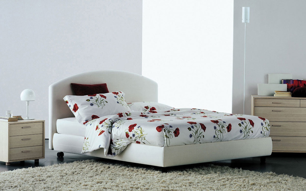 The Magnolia bed from Italian manufacturer Flou. The frame is made from aluminium, removable upholstery - leather or textiles from a range of campaigns. Model double bed with high headboard features a pullout drawer for storage. A wonderful choice for the bedroom in modern style. Product color white.