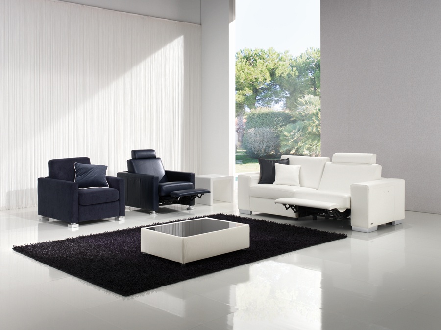 Double leather sofa DONATELLO from the Italian manufacturer Loiudiced. Rectangular model with clear straight lines, lifting armrests and headrests. The sofa is made of solid wood and high quality leather, has a low metal legs. Will fit harmoniously into the living room, executed in a contemporary style.