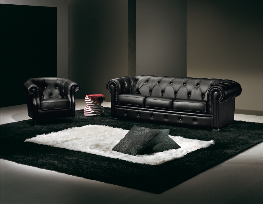 Double leather sofa CHOPIN from the Italian company Loiudiced - practical, noble sofa Chesterfields. Such a model cannot be confused with one sofa. Deep, diamond-shaped stitch "Capito" graces the backrest, armrests and the lower front part of the sofa. The armrests and the backrest are on the same level and have the shape of tight curls. Legs – a short, spherical, coating – lacquer gloss. Cushioned seats removable.