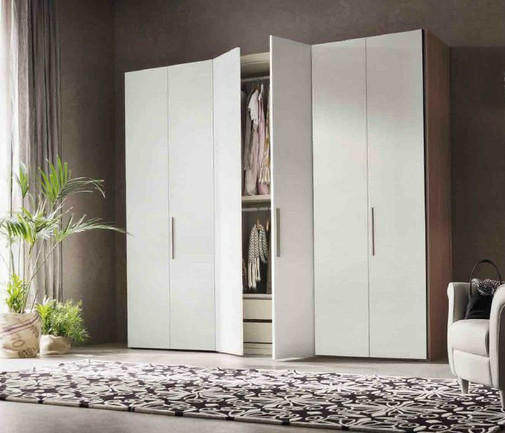 Anta Liscia wardrobe from the Italian manufacturer Serenissima. Wardrobe with 6 swing doors. Made from solid wood, finishing melamine, veneer elm. Color range is wide to choose from the range. Laconic decoration are strict handle from aluminium. The Cabinet is equipped with shelves made from aluminium and glass, built-in sensors to automatically turn on and off the light. The product in modern style, meets the needs of modern technology lovers and lovers of beauty and aesthetics. The perfect choice for the modern interior.
