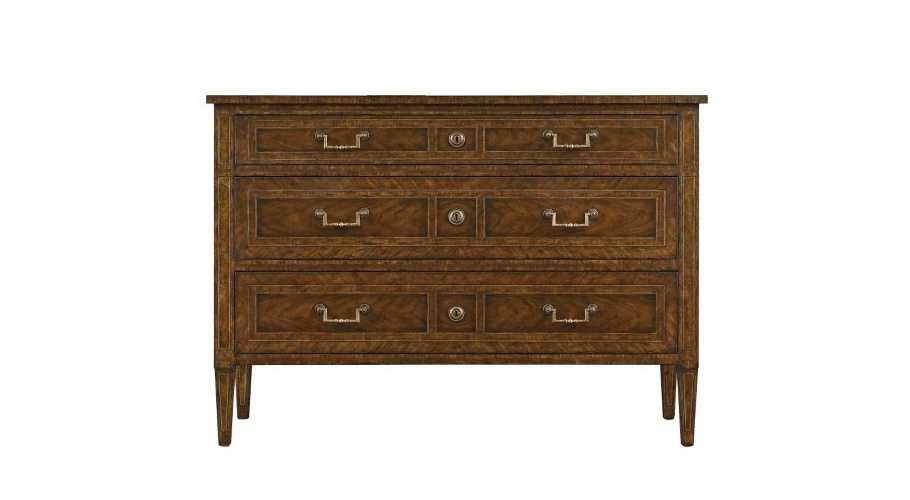 Chest Villarosa from the American manufacturer Henredon. Model with three drawers. Frame made of solid wood coated with veneer. The metal fittings. The product is made in neo-classical style of the 19th century, with clean crisp lines, with the dramatic veneer combinations that were common in Italian furniture.