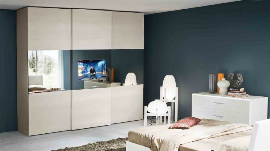 Wardrobe-slider with a LED screen in the finish of oak Anta led, Serenissima