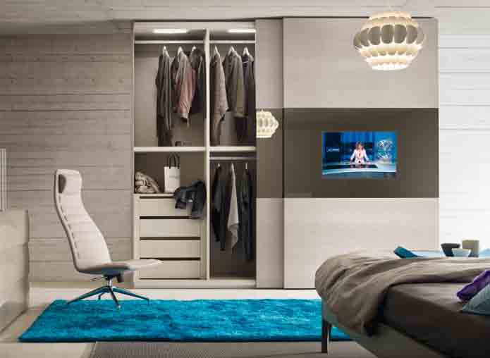 Wardrobe-slider with an LED screen in the finish of melamine Anta led, Serenissima
