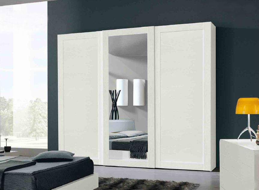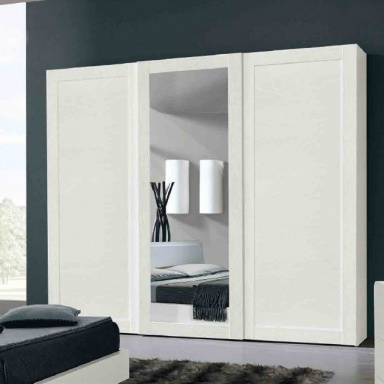 Wardrobe-slider Legno con cornice from the Italian manufacturer Serenissima. The Cabinet is made of solid wood. Finish - oak veneer with a porous structure. Finish - white Matt lacquer. Available in a wide palette of lacquer in matte or glossy finish. The facade is decorated with mirror. The main feature of the model is straight concise lines. A great choice for stylish modern interior.