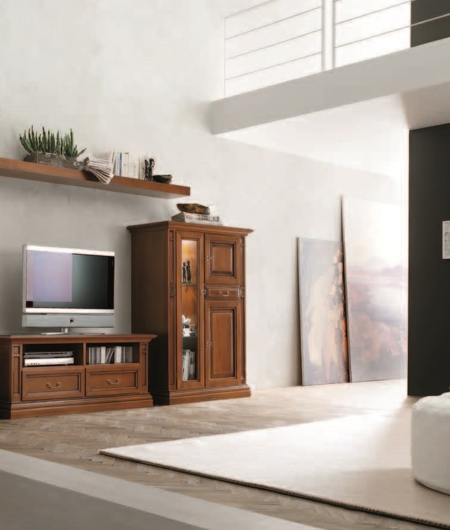 Small wardrobe-showcase Nabucco from the Italian manufacturer Maronese. Model in the classic style, the frame is made of wood. Showcase has two wooden and one glass door, one drawer, two glass and one wooden shelf. Internal lighting gives the Cabinet-showcase additional convenience and comfort. The model will perfectly complement Your living room or dining room.