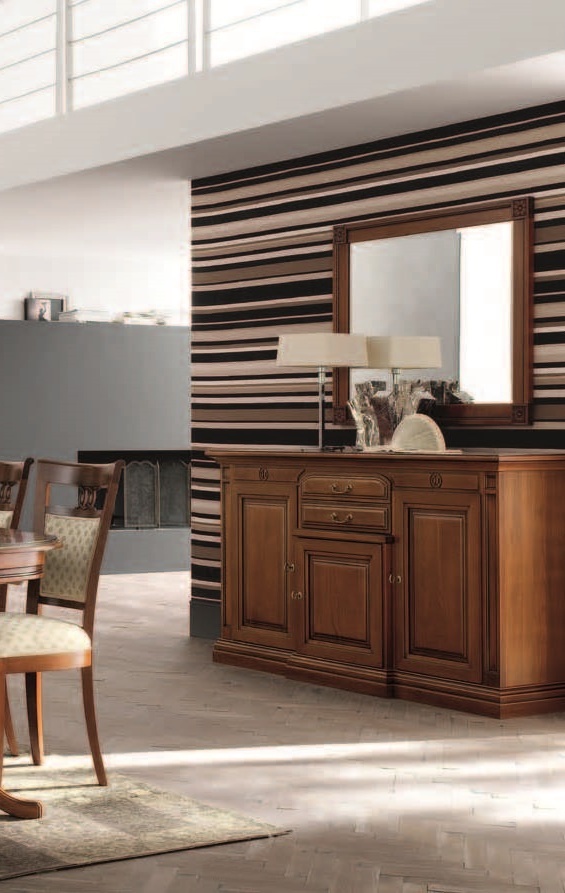 The buffet Nabucco from the Italian manufacturer Maronese. Model in the classic style, the frame is made of wood. The sideboard has three doors, two drawers and three internal shelves. Original multi-function model with a decorative pattern will bring You real pleasure.