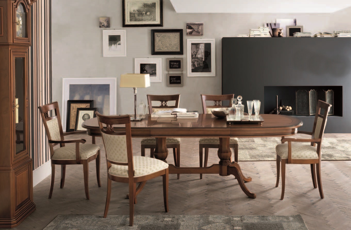 The Nabucco dining table from Italian manufacturer Maronese. Model in the classic style, the frame is made of wood. Oval sliding table. Decorative legs give the model a distinctive style and originality. At the dinner table Nabucco You will be very pleased to spend time with your loved ones.