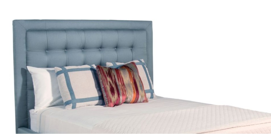 Double bed Leigh from the American manufacturer Pearson. The case is made of wood. High headboard square shape. Upholstery textiles. The model is decorated with a decorative stitch.