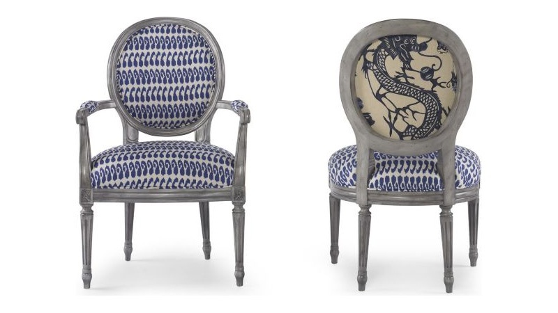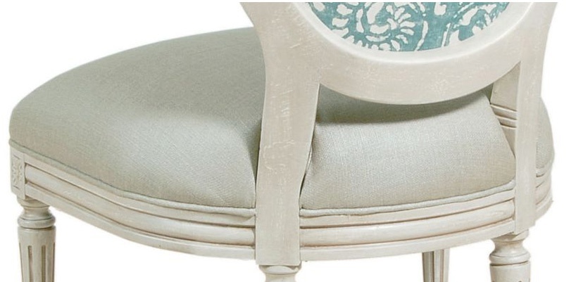 Chair Azzie from the American manufacturer Pearson. The body is made of wood. The model is available with or without armrests. Carved back - medallion classic with fluted legs. Upholstery textiles. Colours in stock.