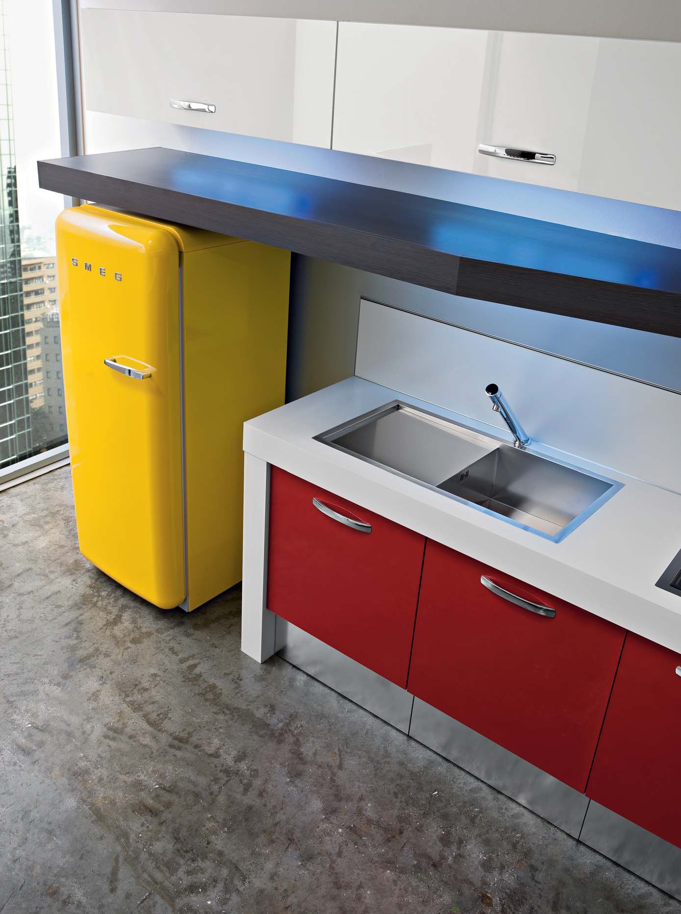 structure: wood facades: MDF accessories: chrome-plated steel countertop: artificial stone facades: lacquered |